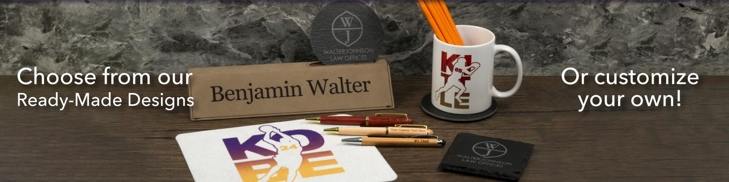 We will personalize your choice of item with UV Ink, laser engraving, and more! Click "Start" to find your item and start customizing!