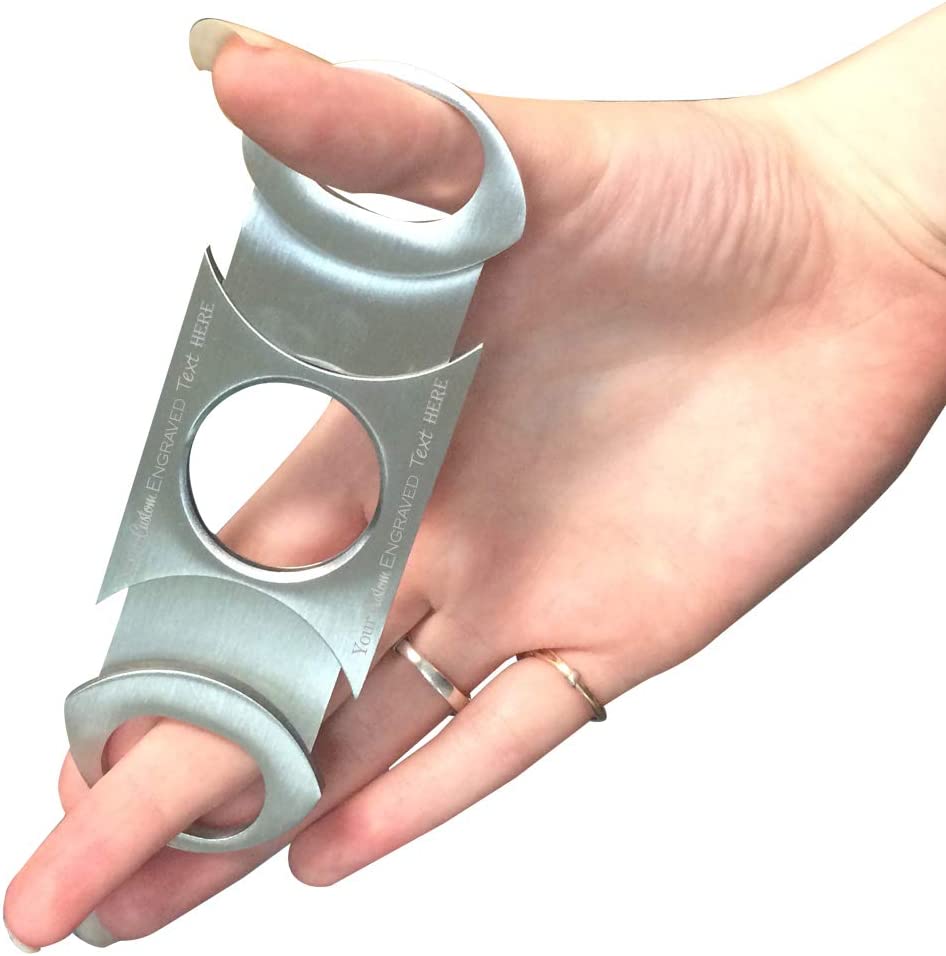 Customized Engraved Stainless Steel Cigar Cutter - Add Your Text