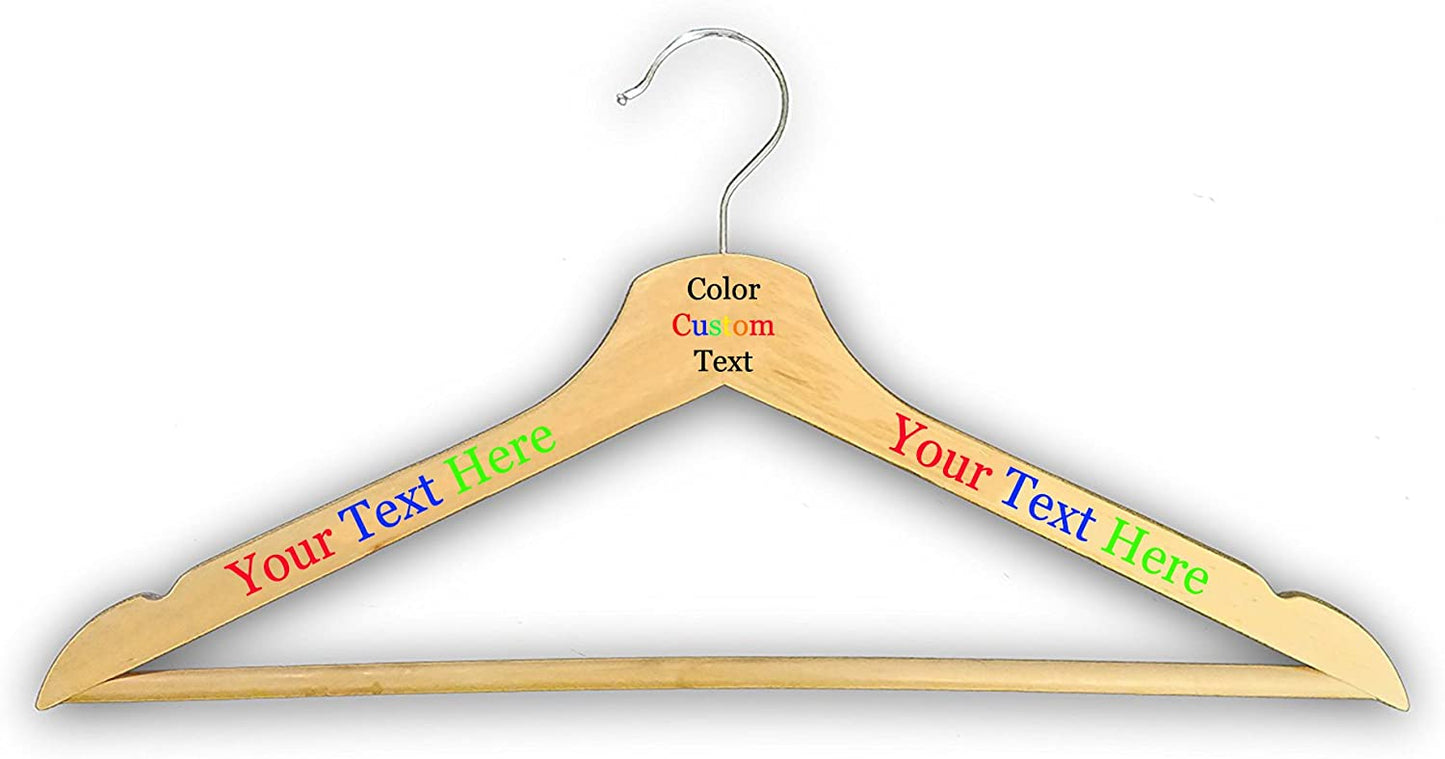 Customized Engraved OR Color Printed Wood Clothes Hanger - Add Your Text - Choose from 3 Finishes