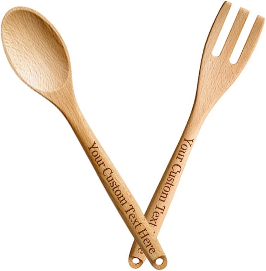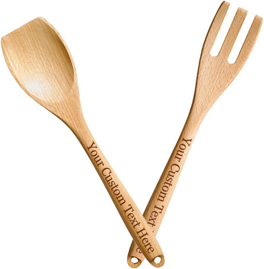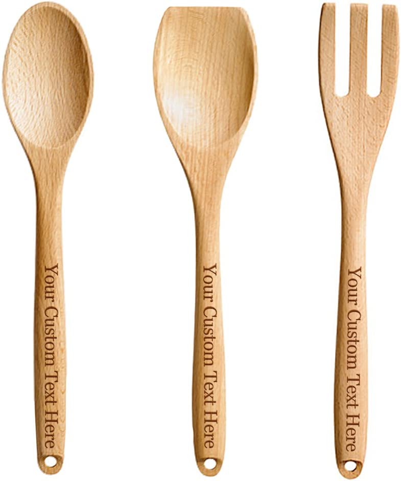 Customized Engraved OR Color Printed Wooden Spoons or Fork - Add Your Text - Available in 2 and 3 piece sets!
